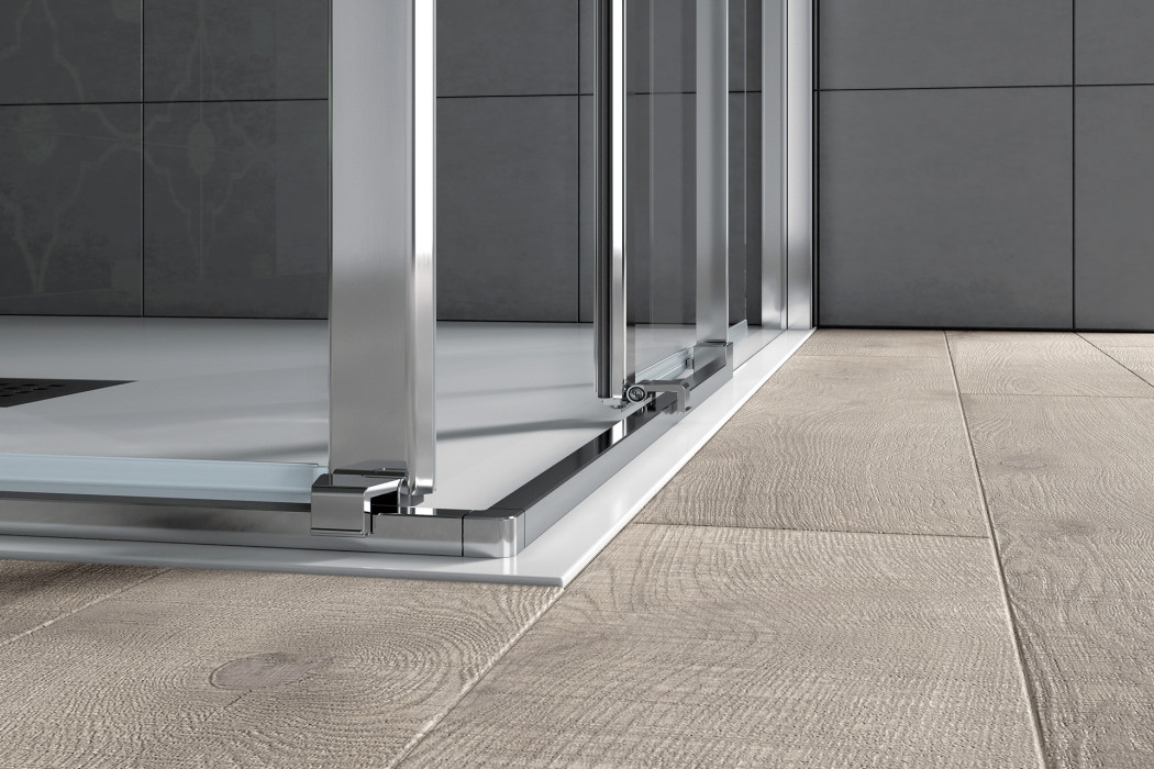 Shower wall with two panels and side sliding opening. Suitable for most installations and available in a wide range of sizes.