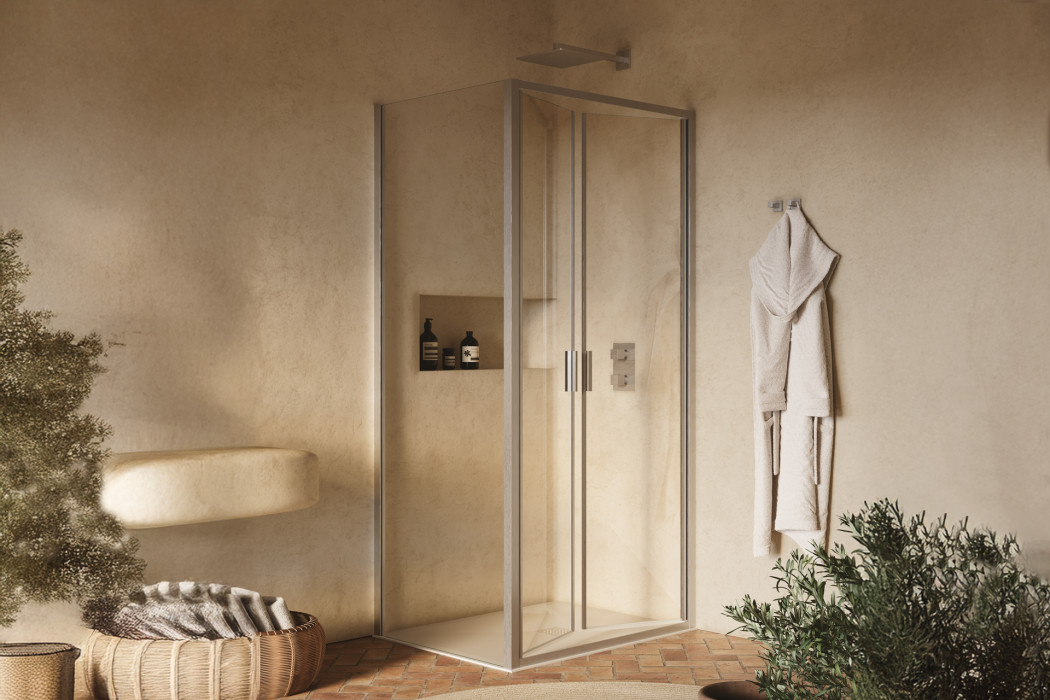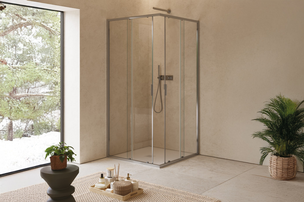 Parete doccia ad angolo a quattro ante, apertura ad ante scorrevoli nell’angolo del prodotto. Modello adatto per la maggior parte delle installazioni e disponibile in un’ampia gamma di dimensioni, soprattutto per chi vuole massimizzare le dimensioni d’ingresso.