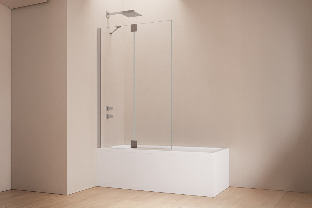 Parete vasca ad un’anta battente apribile sia verso l’interno che verso l’esterno. Sulla parte esterna è posizionato un portasalviette con interasse 450 mm e lunghezza totale di 480 mm. L’anta è dotata di guarnizione inferiore per evitare perdite d’acqua dal bordo. L’anta è arrotondata.