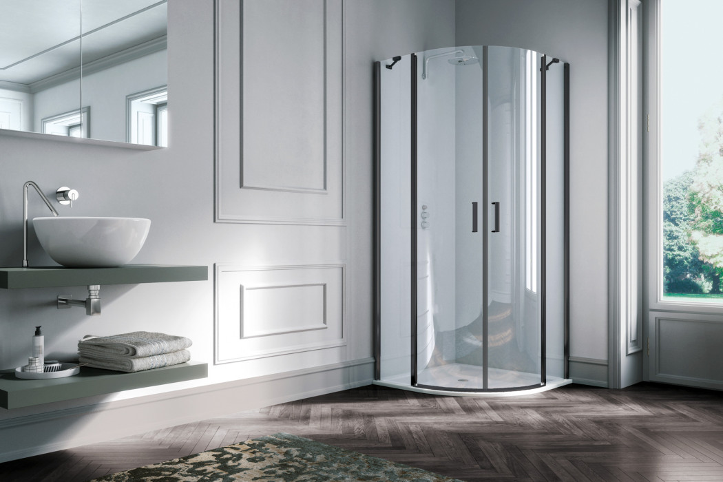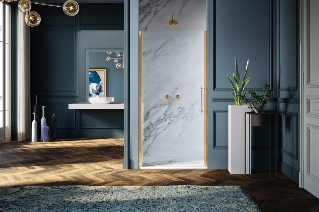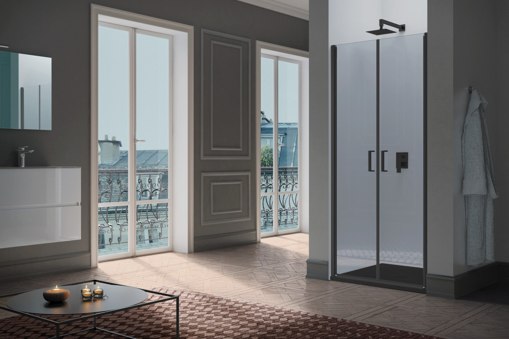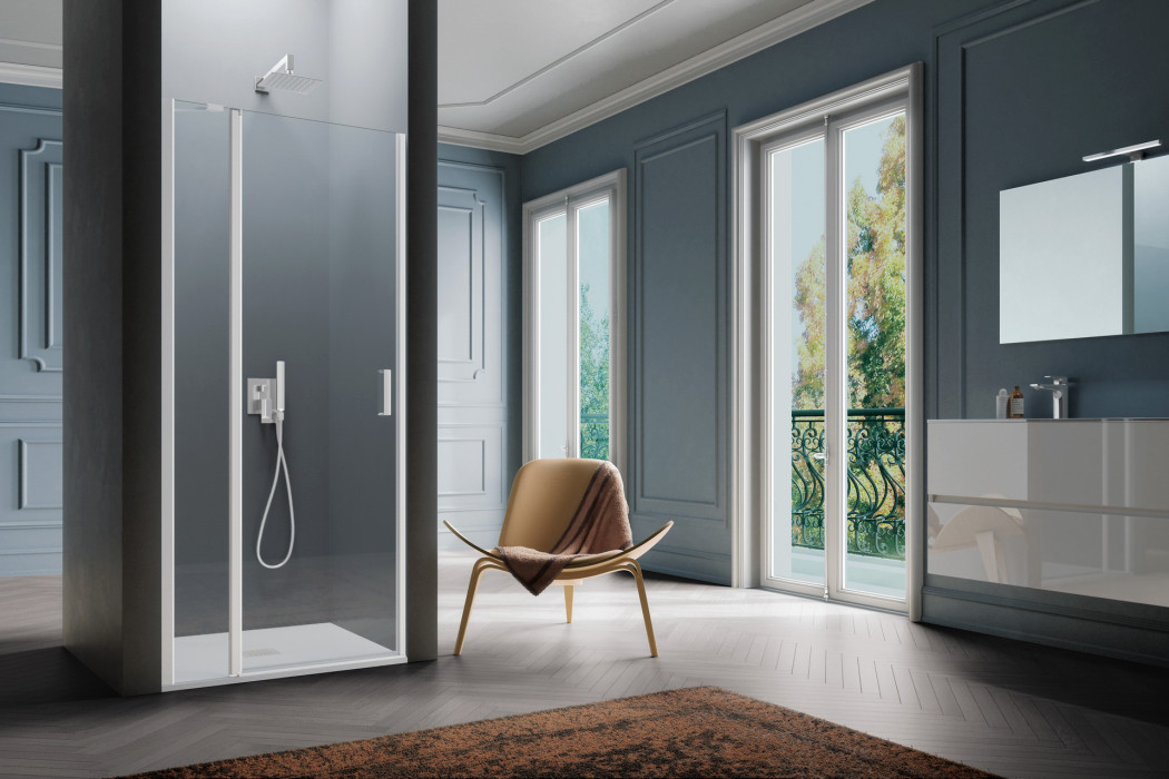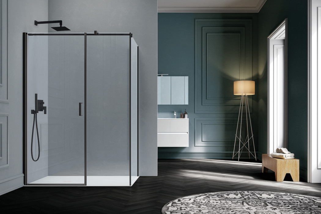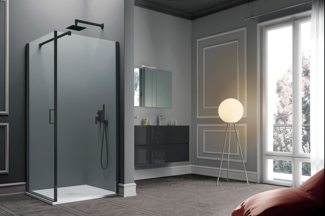 Parete doccia in configurazione ad angolo formata da due porte battenti con parete fissa in linea. L’apertura dell’anta è sia verso l’interno che verso l’esterno. Modello ad alto impatto estetico e disponibile in dimensioni maggiori rispetto ad una tradizionale porta.